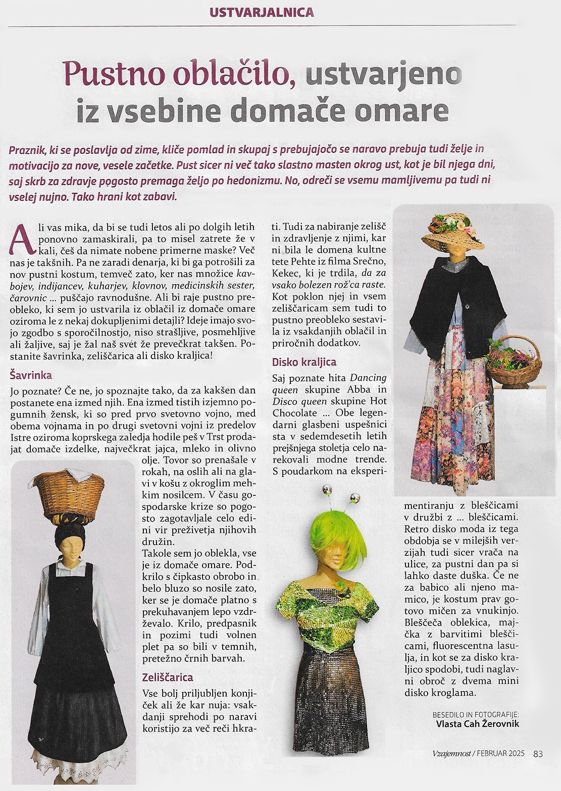 - Vzajemnost: Pustno oblačilo, ustvarjeno iz vsebine domače omare