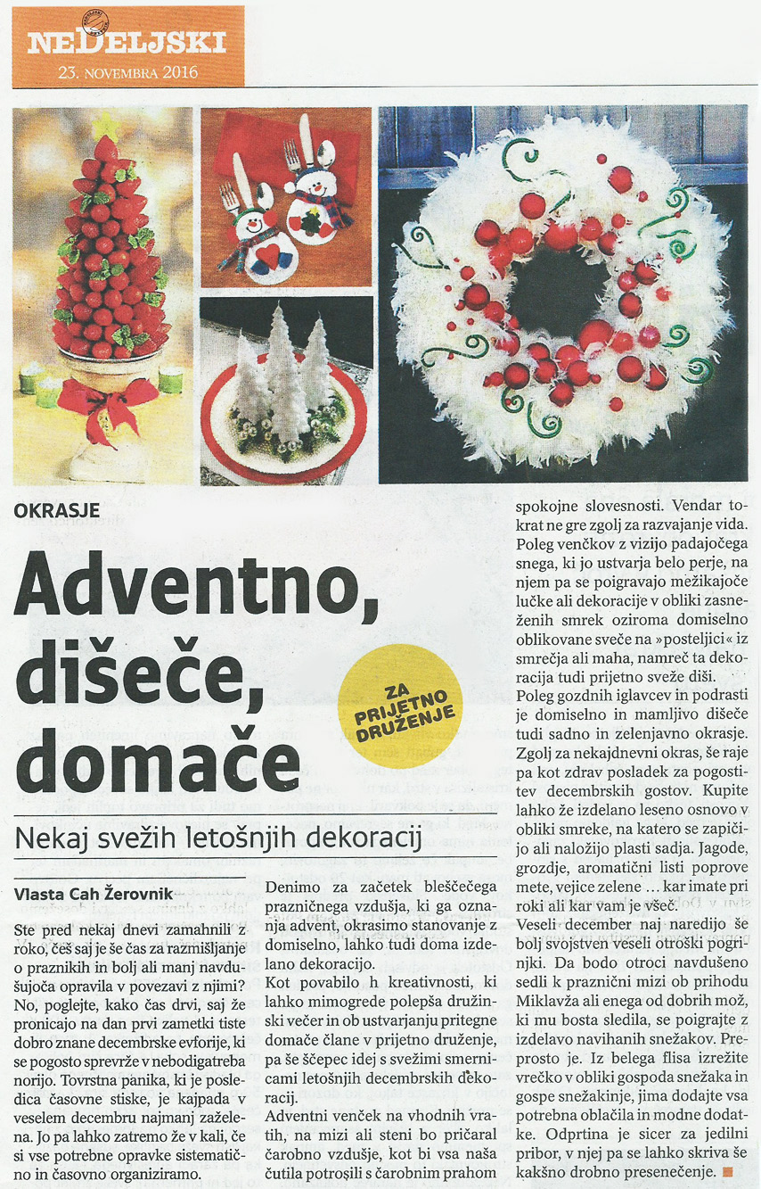 novinarski prispevek objavljen v Nedeljskem dnevniku: Ustvarjalne