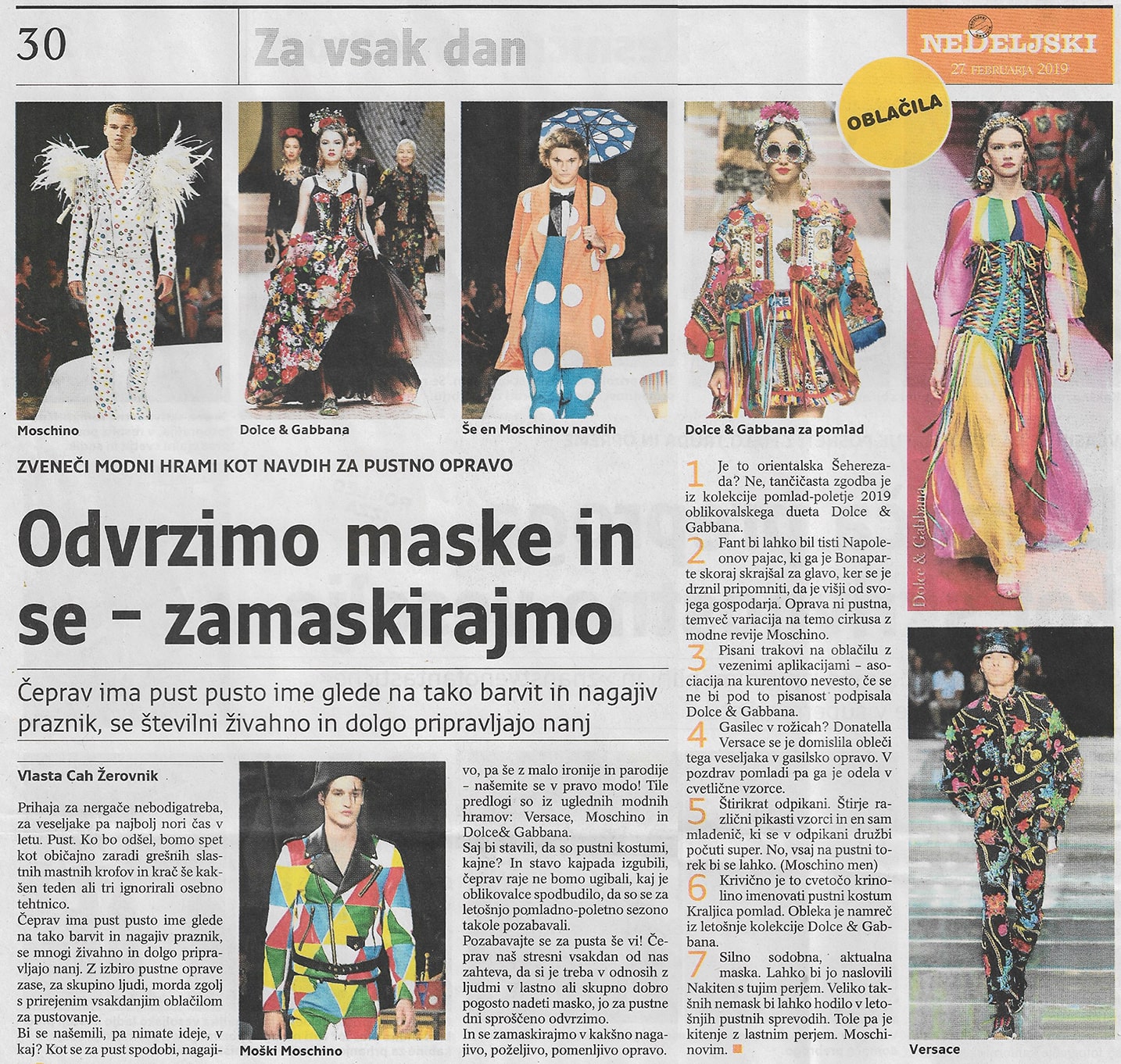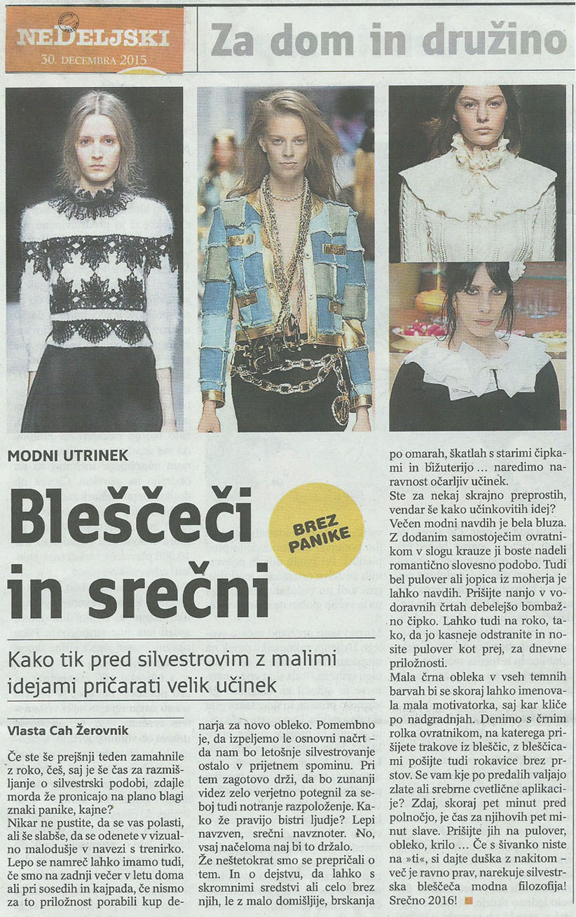 prispevek objavljen v Nedeljskem dnevniku: Modna